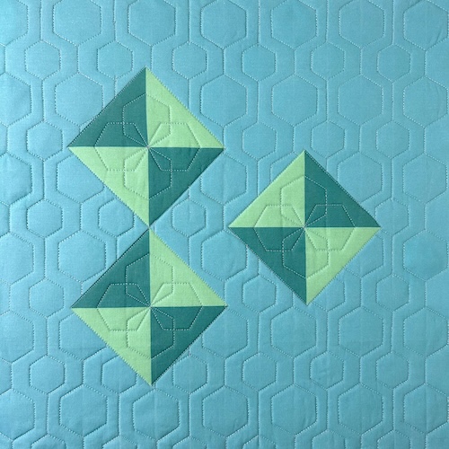 Kit Contents: Modern Hourglass fabric panel, Hexagon Ruler Quilting Pattern Booklet, Ruler Quilting tips sheet