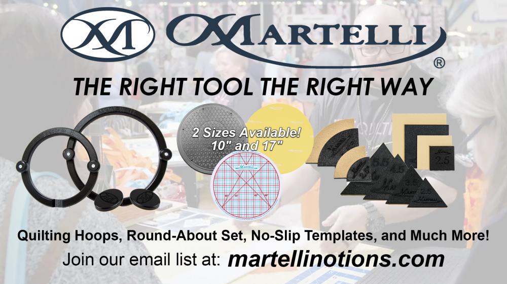 When Martelli goes to the drawing board to develop a new tool, we always want to be certain the tool is ergonomically designed. This approach to tool design ultimately helps quilters projects become reality. We want Martelli tools to be user-friendly yet still give amazing results. Of course, inaccurate tools are useless to quilters, so we make sure our tools help them achieve the highest levels of accuracy. This perspective is at the very core of what moves Martelli forward when creating quilting tools for the 21st Century quilter.We appreciate all our customers who have used our tools, and we thank you for your encouragement and support!
